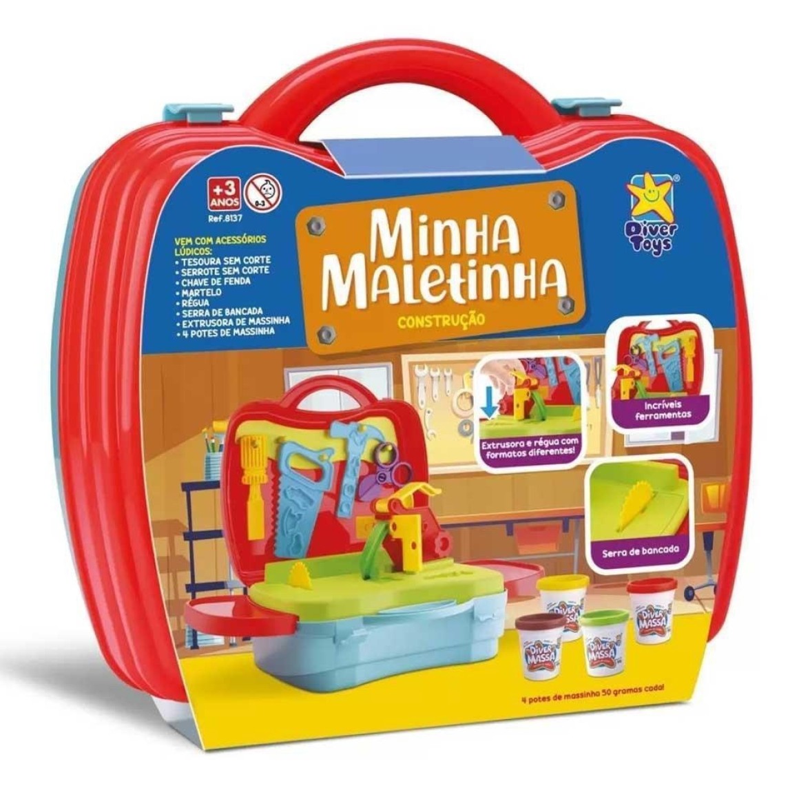 Uma super Maletinha que vira uma linda bancada de trabalho com ferramentas para construir e soltar sua imaginação com massinhas coloridas.