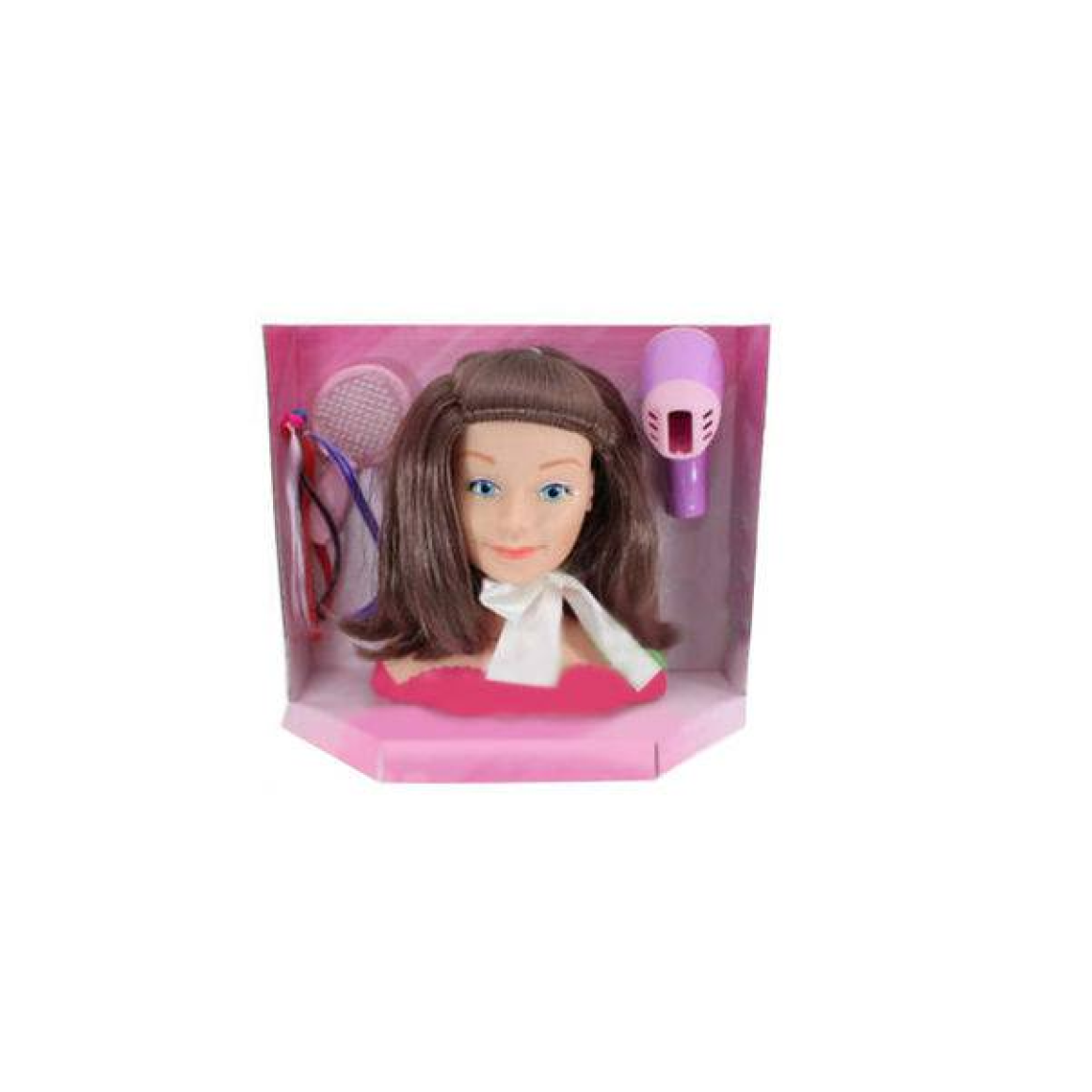 Contém    01 boneca maniquim em vinil com cabelo em nylon, 01 secador de brinquedo, 01 escova de brinquedo, 01 presilha, 04 apliques de mechas  e 01 laço.