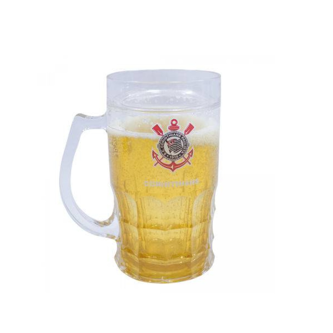 Caneca de plástico de 400 ml com brasão do seu time. Caneca possui revestimento de líquido na cor de cerveja, como se a caneca estivesse cheia de bebida. Material plástico.