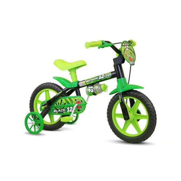 Bicicleta Infantil Masculina Preto Verde Aro 12 Black 12