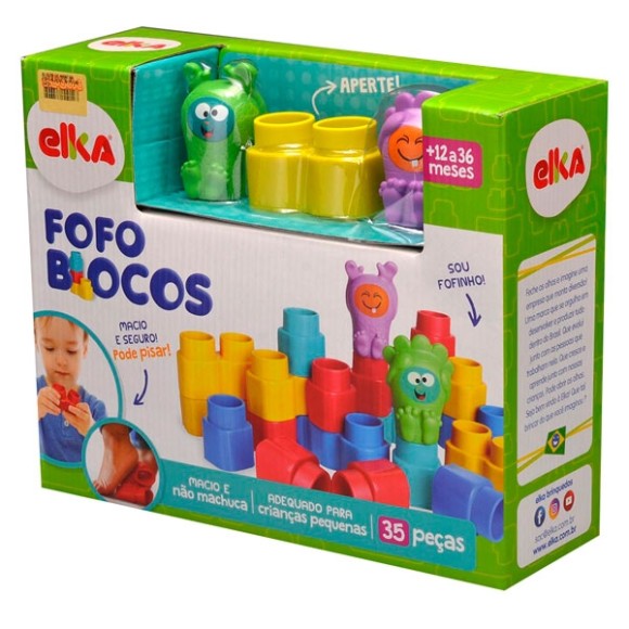 Os Blocos de Montar Fofo Blocos 35 Peças da Elka são ótimas ferramentas no aprendizado dos pequenos, além de estimular a imaginação das crianças desde cedo Os Fofo Blocos são blocos de montar macios e super fofinhos para crianças pequenas. A brincadeira é encaixar, empilhar e montar. Produzido em material atóxico, a criança pode pisar e sentar em cima que não machuca. Este super kit traz 35 peças para criançada passar horas se divertindo e montando o que quiser. Imagens meramente ilustrativas.