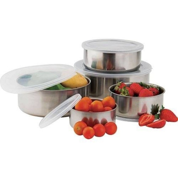 Conjunto De Potes E Tigelas Organizadoras Inox Com Tampas 5 Peças Feito De Material Resistente