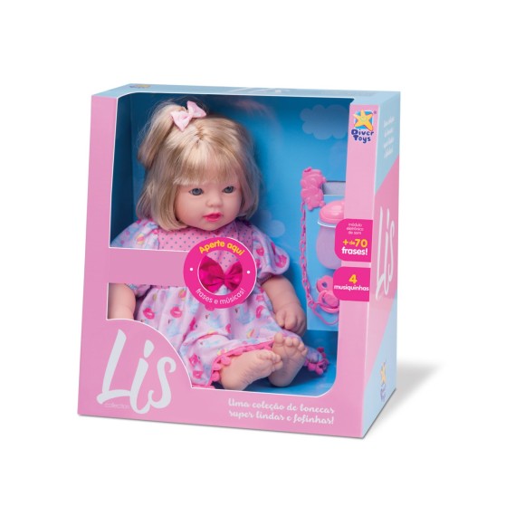 Esta linda boneca vai encantar qualquer criança, além de ser uma boneca sofisticada com alto padrão de qualidade, ela fala mais de 70 frases e canta 4 musiquinhas, acompanha um copinho de suco e uma chupetinha para brincadeira ficar ainda mais divertida. É super fofa e delicada, gostosa de abraçar e apertar, e compõe um delicioso cheirinho de bebê perfumada.