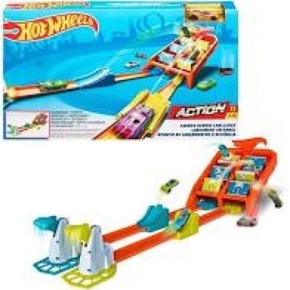 Quando você joga com este conjunto de faixas, você tem que virar as telhas de destino para ganhar. A pista consiste em um carro Hot Wheels, alvos giratórios e duas trilhas e lançadores ajustáveis. Uma vez montado o conjunto de pistas, cada jogador recebe o mesmo número de carros Hot Wheels. (Como esse conjunto só vem com um, você precisará extrair carros adicionais do seu esconderijo). Em seguida, os jogadores lançam simultaneamente seus carros nos alvos. Faça os alvos virar para marcar pontos. Você pode jogar onde os jogadores com mais pontos ganham, ou ser o primeiro jogador a virar e revelar um logotipo completo de Hot Wheels para ganhar.
