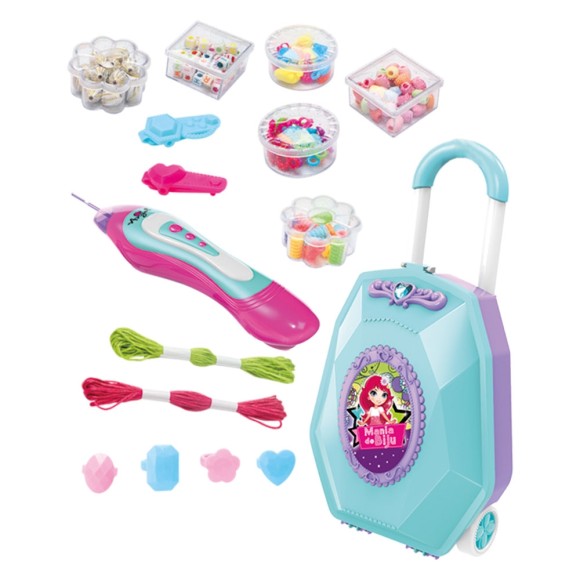 Maleta com alça, rodinhas e Kit de bijuterias